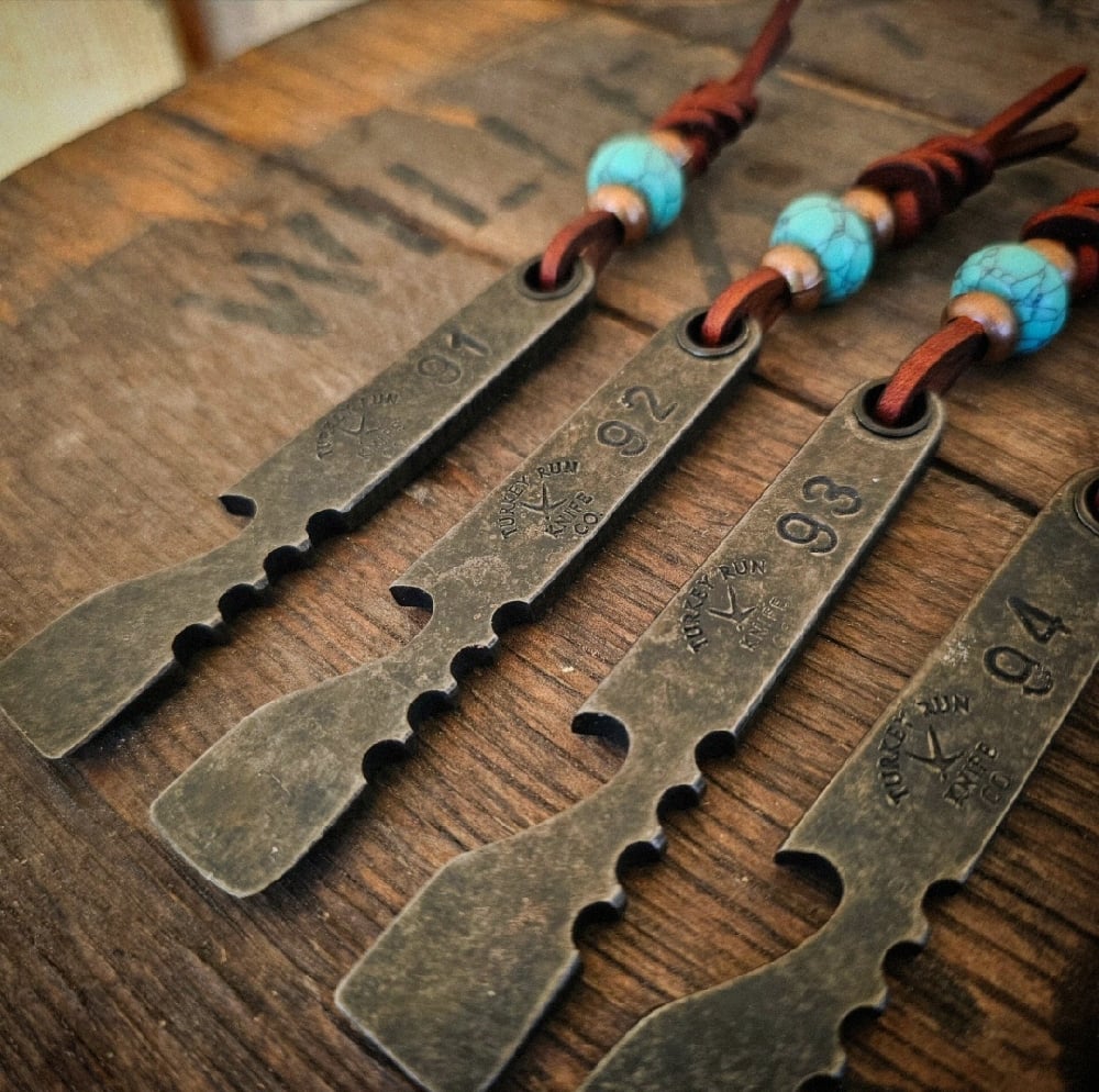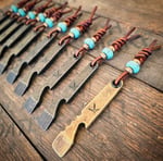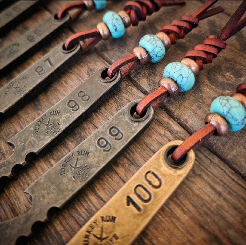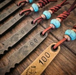 #091 - #100 will come with a leather lanyard featuring a turquoise trustone and copper beads as shown. These are all hand stamped on both sides.